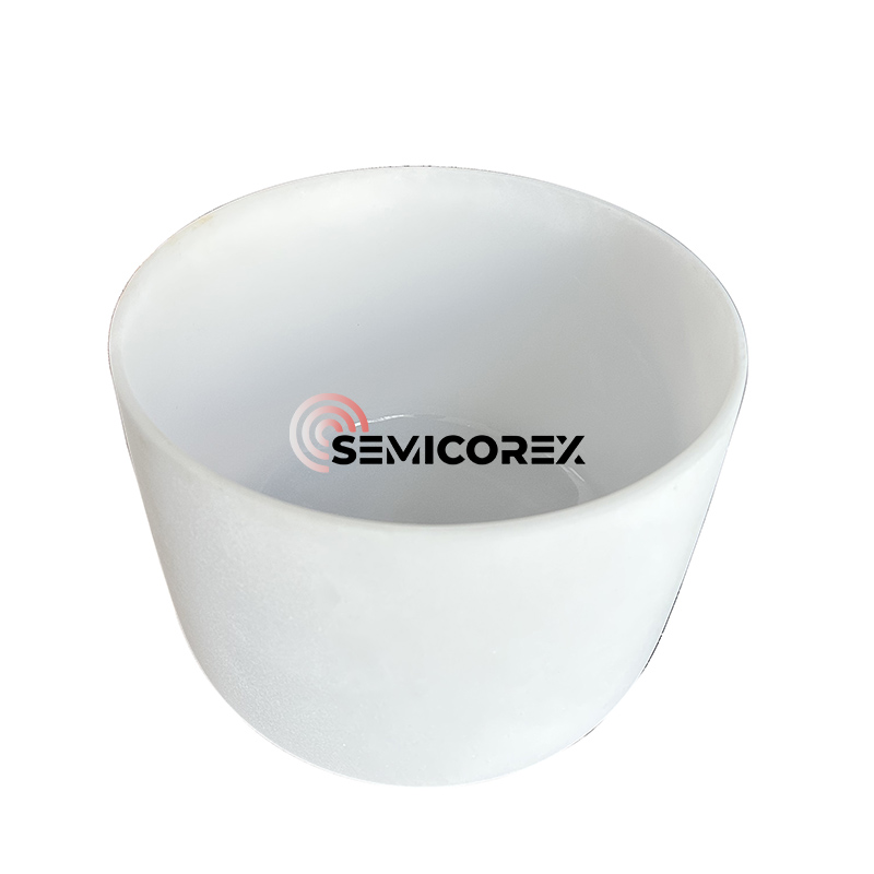 The sulietas kvarcasOptinės savybės ir mechaninės charakteristikos suteikia unikalių privalumų puslaidininkių nustatyme. Mažas šiluminio išsiplėtimo koeficientas sušvelnins šiluminį smūgį ir matmenų nenuoseklumą, o žemas šilumos laidumas padės išsaugoti temperatūros gradientus kristalų augimo krosnyje, palyginti su kristalu. Vidinis tiglio paviršius, kuris yra sklandus praeities šiluminis, sumažins kietųjų dalelių susidarymą ir paskatins vienodą lydymosi elgseną, kuris dar labiau apsaugos užaugintų kristalų grynumą.