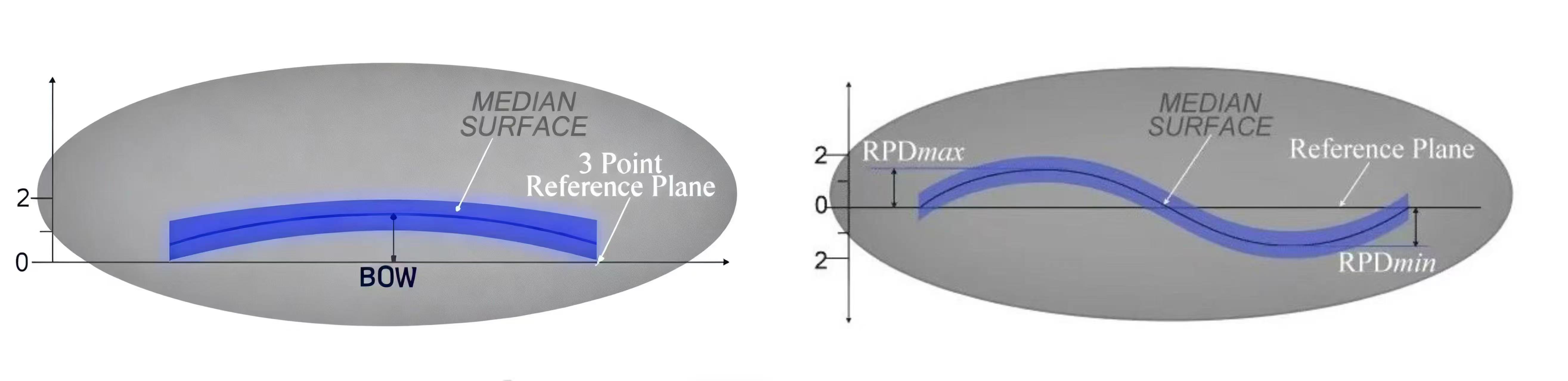 Lanko indikatorius sutelkia dėmesį į vertikalų plokštelės centro srities poslinkį, kuris atspindi tik vietinę lenkimo būseną. Jis tinka vietiniam lygumui jautriems scenarijams įvertinti. Metmenų indikatorius yra naudingas vertinant bendrą plokštumą ir iškraipymą, nes jis atsižvelgia į viso plokštelės paviršiaus nuokrypį ir pateikia informaciją apie bendrą visos plokštelės plokštumą.