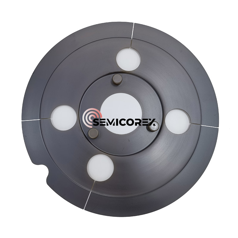 Komponento disko struktūra su tiksliai išgręžtomis skylėmis leidžia kontroliuoti dujų ir skysčių srautus proceso kamerose. Atsižvelgiant į taikymą, skylės gali būti sukonfigūruotos taip, kad būtų valdomas šalutinių produktų srautas arba drenažas, kad būtų švari ir stabili aplinka plokštelių gamybos proceso metu. Pavyzdžiui, naudojant epitaksiją, SiC Fin gali padėti nukreipti proceso dujas arba kondensato srautus, taip padidindamas plėvelės vienodumą ir sumažindamas dalelių užterštumą. ėsdinimo įrankiuose jis veiksmingas saugiai ir efektyviai pašalinant reaktyviąsias medžiagas ir skystus šalutinius produktus, apsaugančius pažeidžiamus kameros komponentus nuo cheminio skilimo.