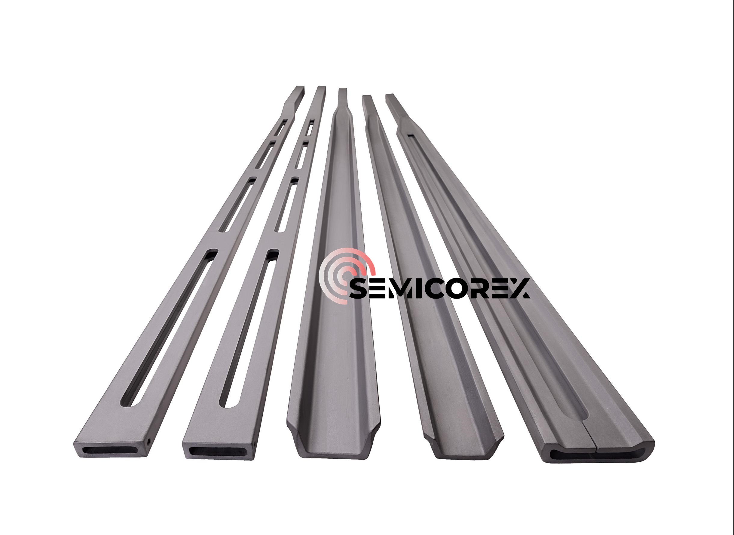 Sukurti taip, kad būtų tvirti ir patikimi, SiC irklai yra konsolės tipo svirtis, laikanti vaflių valteles arba plokštelių rietuves. Mentelė palaiko plokšteles, kol jos įdedamos arba išimamos iš proceso kameros. Įprastos medžiagos sugenda esant tokioms aukštoms temperatūroms dėl deformacijos, deformacijos ar cheminio irimo. Silicio karbido mechaninis stabilumas ir struktūrinis vientisumas leidžia irklui išgyventi kelis terminius ciklus neprarandant formos ar funkcijos. Ši galimybė yra svarbi norint išlaikyti krosnies išlyginimą, užtikrinti, kad plokštelės nebūtų pažeistos proceso metu, ir sumažinti brangias prastovos laiką.