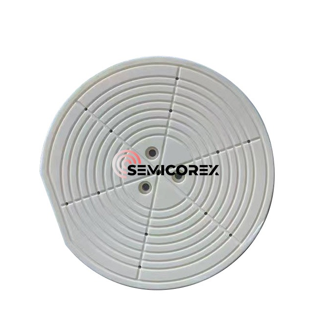 „Semicorex“ vaflinių kraštų šlifavimo chuckas yra speciali keraminė dalis, skirta vaflinių kraštų šlifavimo procesui gamybos puslaidininkių metu. Keramika yra pagaminta iš aukšto grynumo, baltojo aliuminio oksido (Al₂o₃), turinčio mechaninį stiprumą, cheminį atsparumą ir matmenų stabilumą, kad būtų galima palaikyti vaflių šlifavimo procesą. Kadangi naujoms technologijoms reikalingi didesni vaflių skersmenys ir subtilesnės konstrukcijos prietaisuose, vaflių kraštų šlifavimas dabar vaidina svarbų vaidmenį užkertant kelią kraštų skaldymui, mikrotraumoms ir išeigai. Aliuminio oksido keramikos šlifavimo šmaikštus yra stabilus pagrindas, ant kurio galima patenkinti šiuos griežtus gamybos reikalavimus.