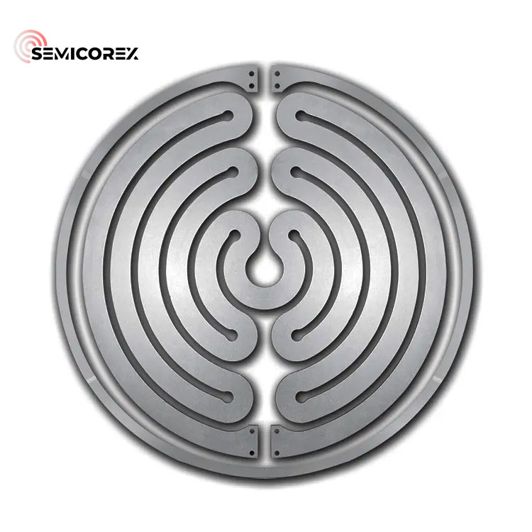 Ypatingos Wafer Process Heater medžiagos savybės ir maža masė leidžia greitai kaitinti, tolygiai paskirstyti temperatūrą ir ypač tiksliai valdyti. Palyginti su kitomis medžiagomis, silicio karbido paviršius išlieka plokščias dėl mažo šiluminio plėtimosi, net kai naudojamas greitai kintant temperatūrai. Kaitvietės labai tinka reikliems procesams puslaidininkių apdorojimo sistemose.